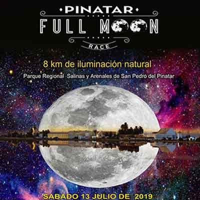 La Concejalía de Deportes del Excmo. Ayto. San Pedro del Pinatar organiza PINATAR FULL MOON RACE, en colaboración con la Federación de Atletismo de la Región de Murcia. La prueba se celebrará el próximo SÁBADO 13 DE JULIO 2019 desde las 21:30 horas, en San Pedro del Pinatar. La salida y meta estará ubicada en Dársena Deportiva Marina de las Salinas.